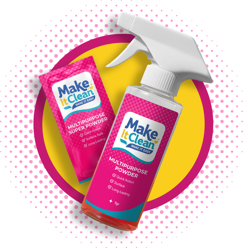 Semprotkan pada area kotor, lalu lap dengan kain basah atau kering.